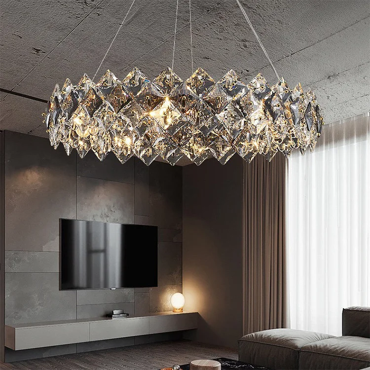Роскошные круглые светодиодные подвесные светильники, Хрустальная современная домашняя люстра