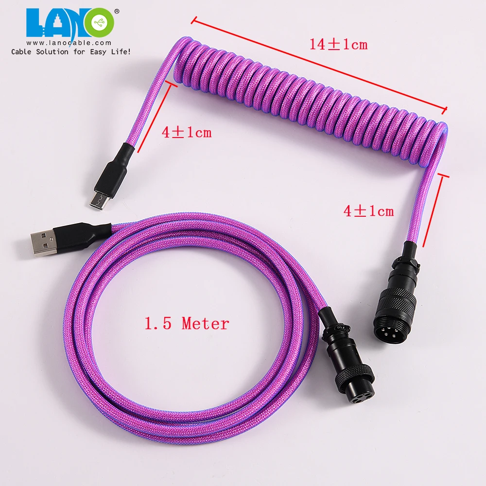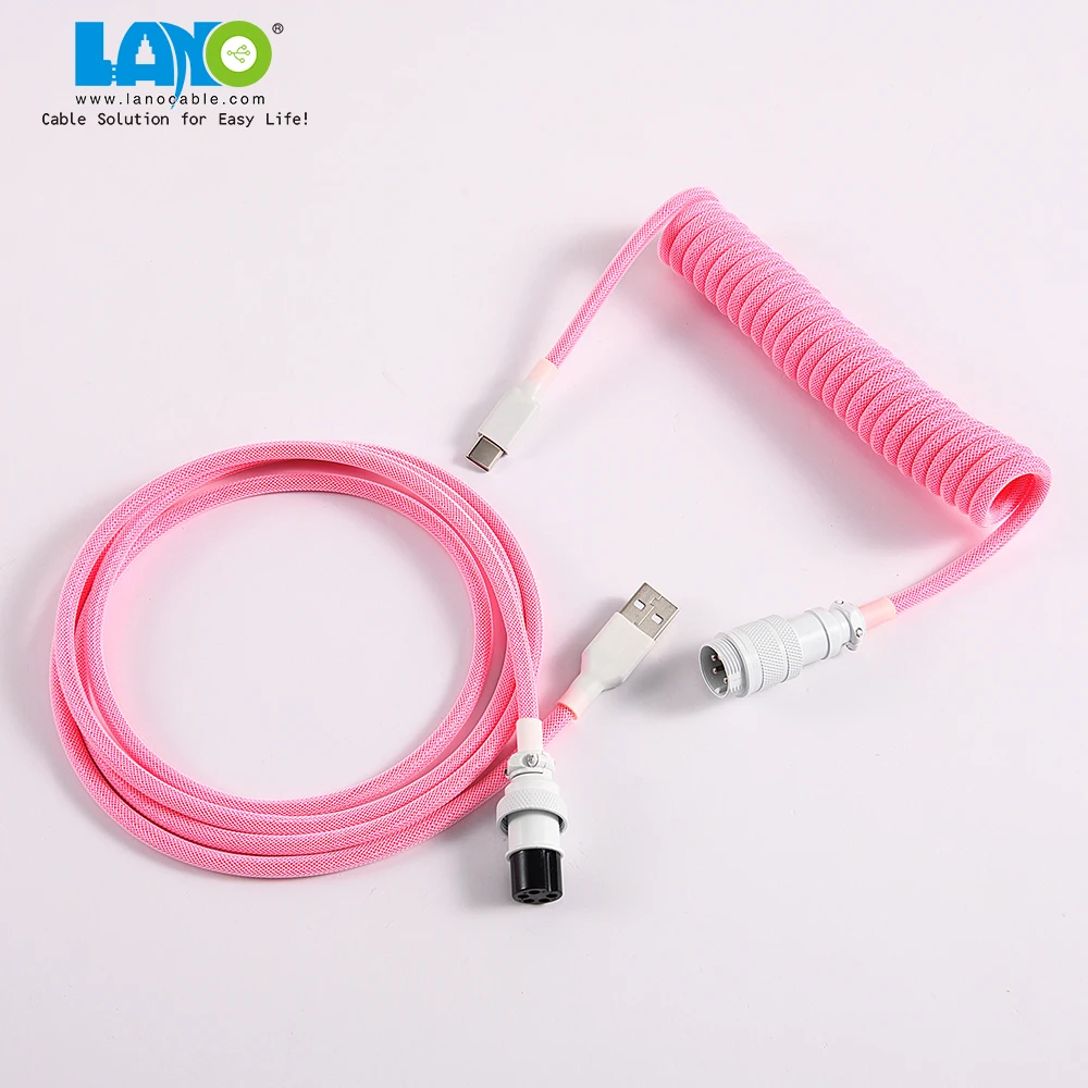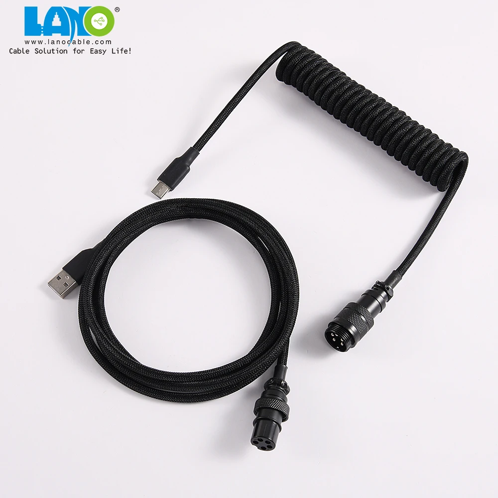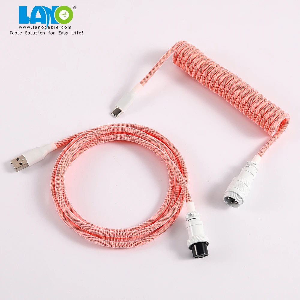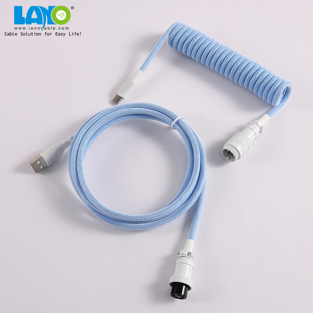 Product name | custom techflex GX16 aviator usb c coiled mechanical keyboard cable aviation spring Double sleeve USB |