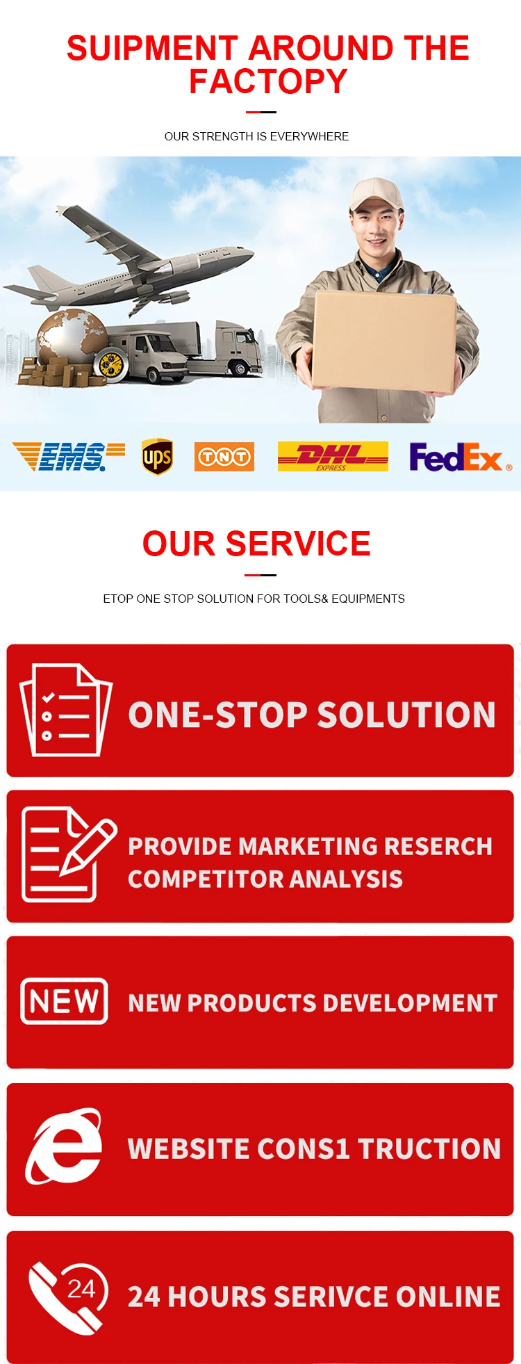 Q4: What’s your delivery time ? For ETOP brand ,we do have many in stock,which can be shipped within one week.For OEM,it usually 35 days .