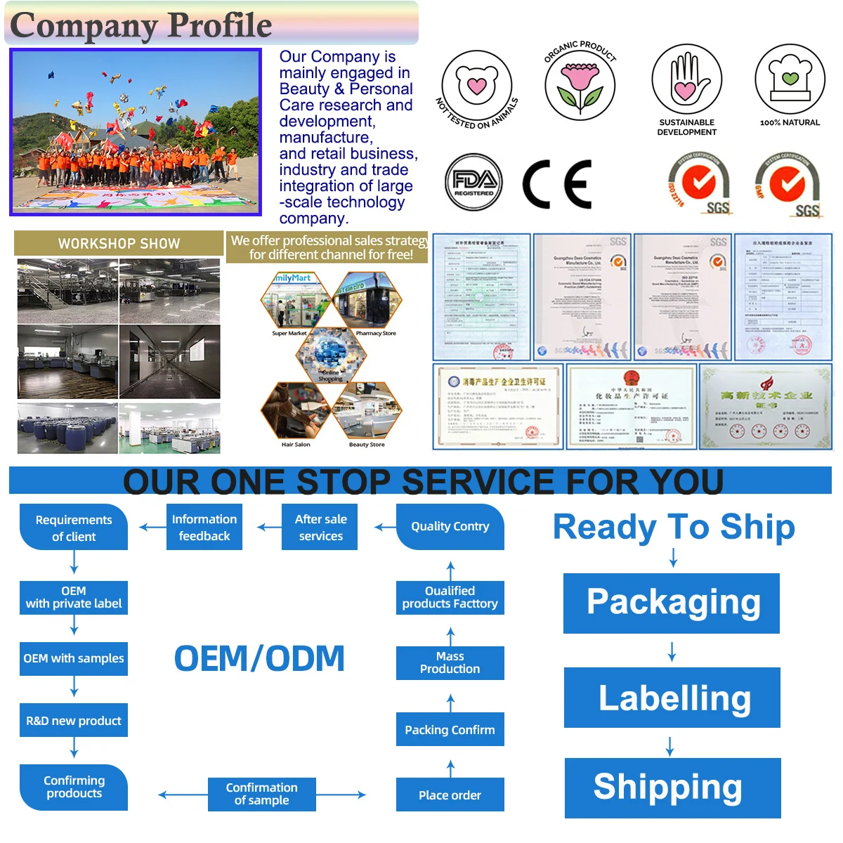 Our Company is mainly engaged in Beauty & Personal Care research and development, manufacture, product and retail business,industry and trade integration of large-scale company.
