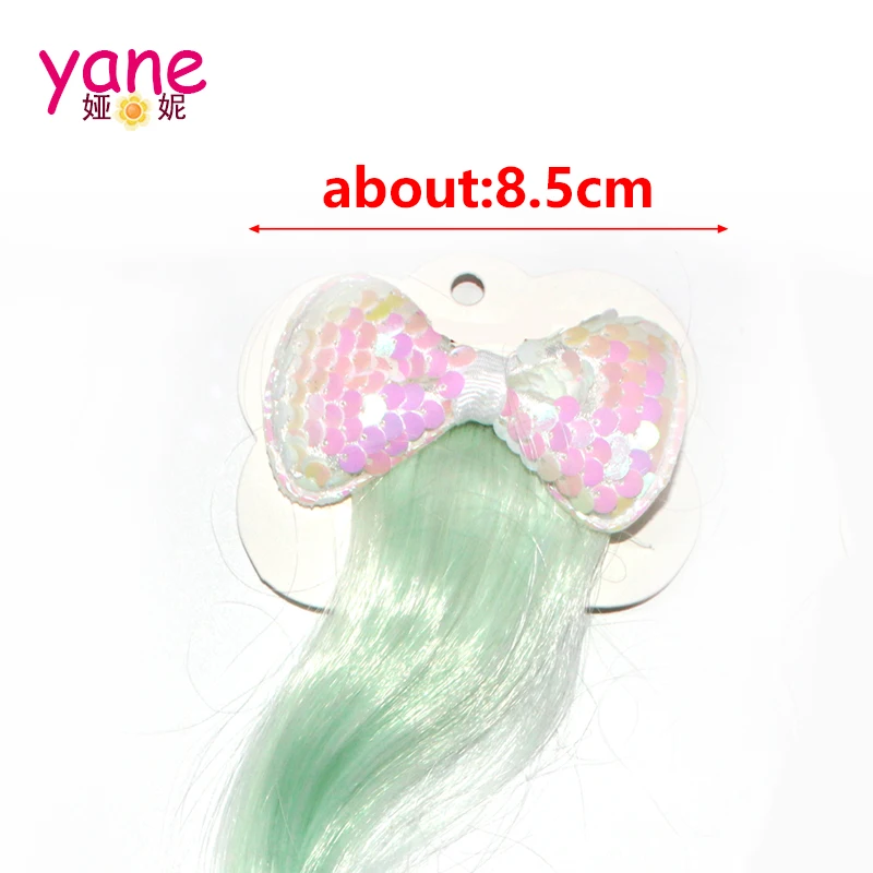 Bling fish scale Kids custom models bow hair clips with wig hair | ||||||