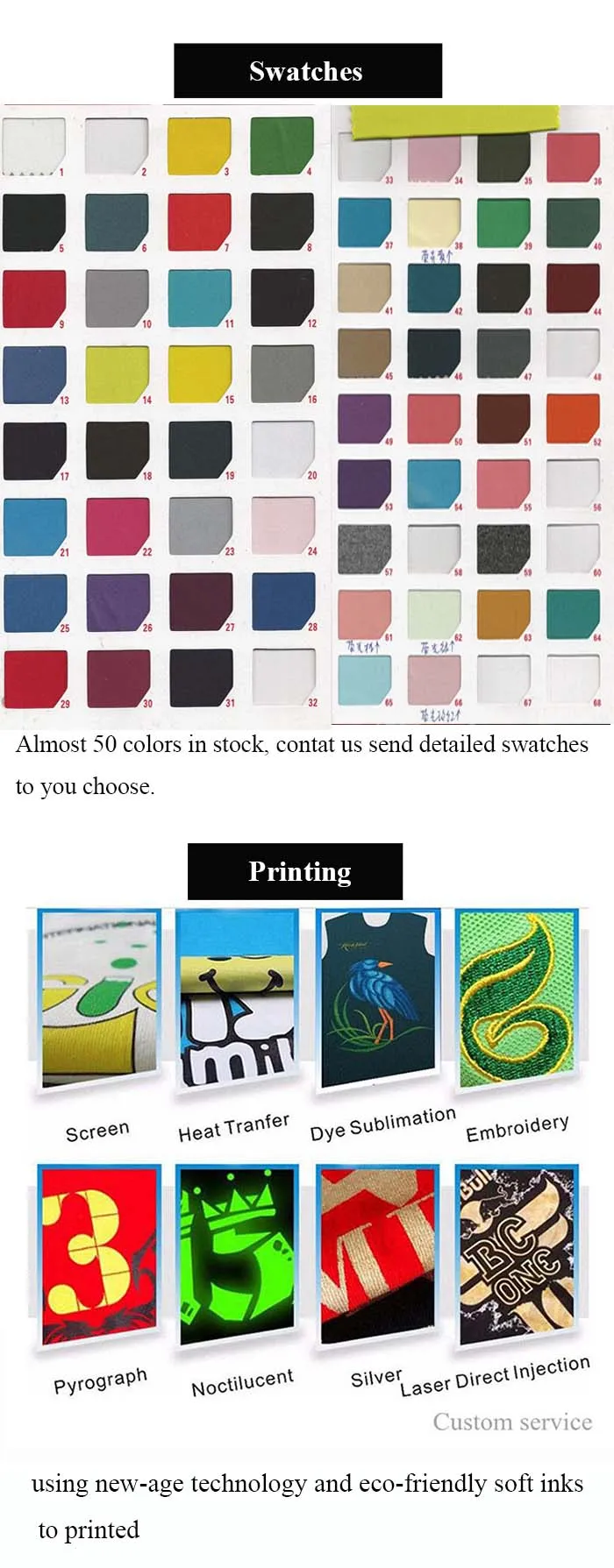 Material options | 1.100%cotton 2.100%polyester 3.cotton/spandex | ||||||