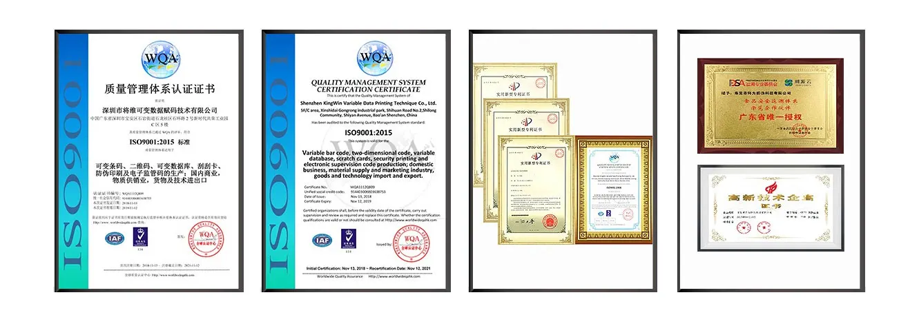 Surface finish | Gloss varnish, spot UV-coating, hot stamping, hologram layer, | Security Feature | Verification Code, Micro Words, KingWin Patent Techniques |