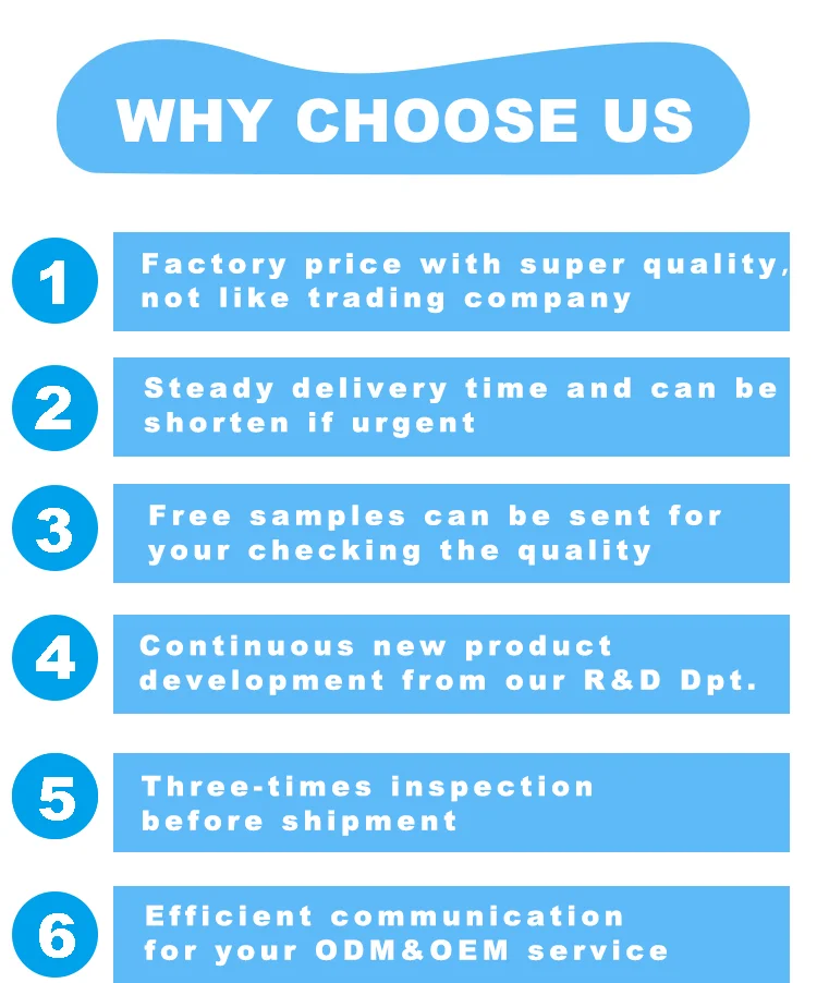 We have been engaging in this industry for 10 years and know the quality requirements from most of the countries and regions. Our clients are now saying high praise of our products and we go steady relationship.Please rest assured we have three times inspection from material to production line to finished products.