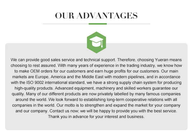 Jiaxing Yueran Trading Co., Ltd. was established in 2017. We rely on the prosperous manufacturing industry in Zhejiang, China to select the most cost-effective products for global customers. All our products meet international quality standards and are available in various markets. Highly appreciated, our good customer service enables us to guarantee customer satisfaction and enjoy a good reputation worldwide. Therefore, our high-quality products and excellent customer service have gained a global sales network covering North America, the Middle East, South America, Europe, Africa, Asia, etc. We sincerely welcome customers from all over the world to join us and establish long-term cooperative partnership with us. We firmly believe that we can work together to create a better future for our business.