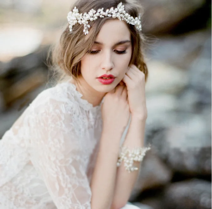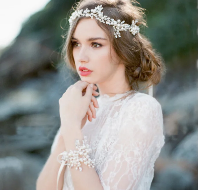 European style bridal head jewelry Bride beading crystal pearl flower headpiece tocado de novia