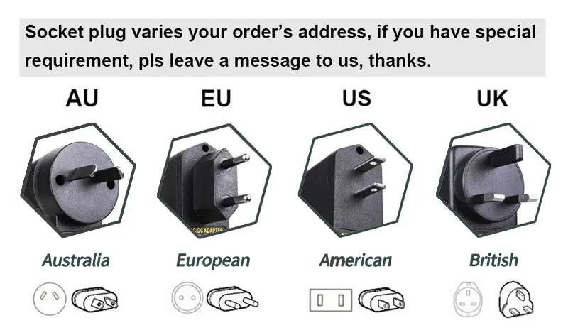 Adapter | EU, UK, AU, US, 100-240V 50/60Hz 1A |