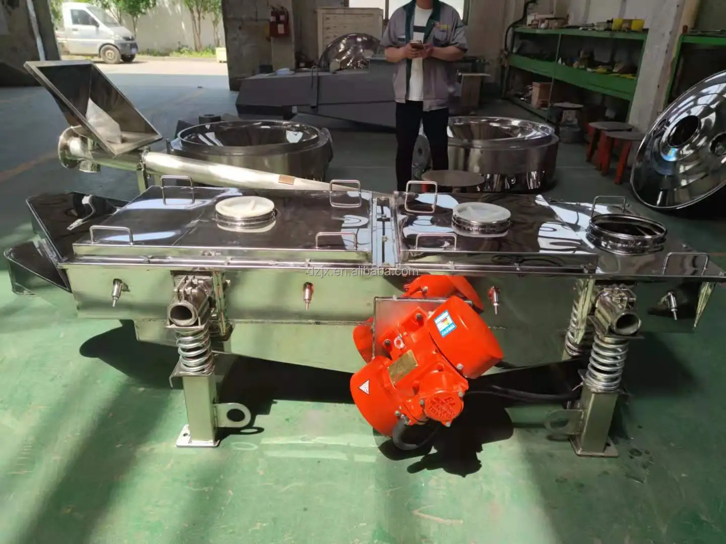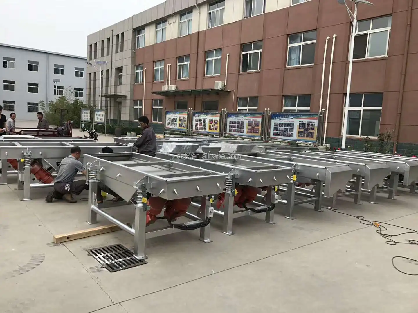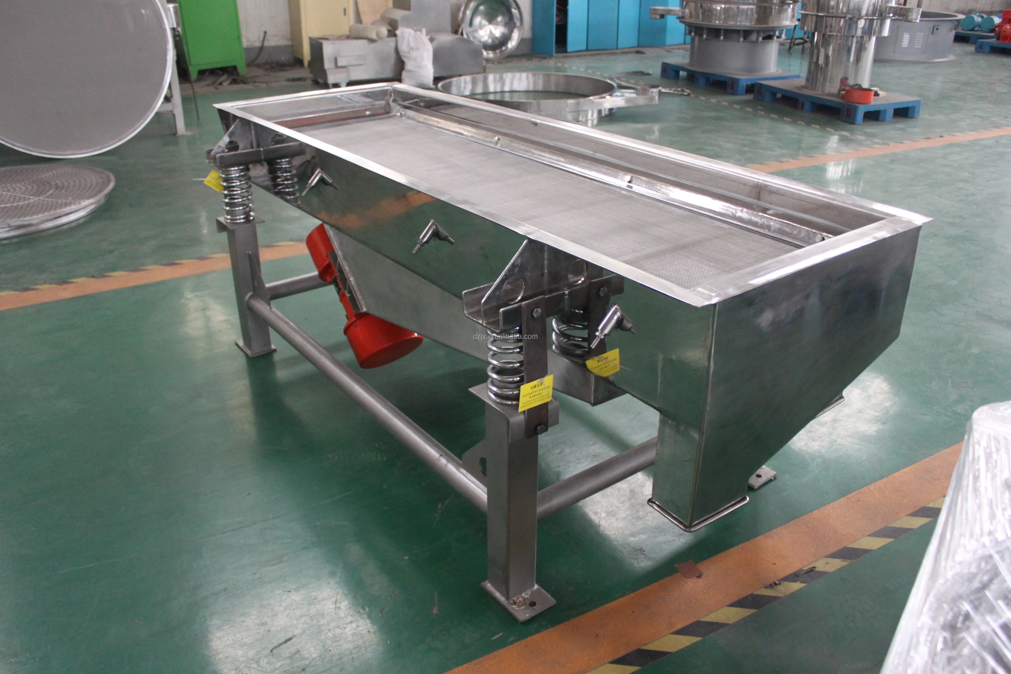 1.DZ ZSQ Series Linear Vibrating Screen is a kindly of stadard and universal screening machine. It consists of screen frame(screen box), supporting or hanging device, driving device, vibration isloation and other parts.2.With two vibrating motors mounted on both sides of the machine body, or mounted on the bottom base of the machine body, this make the materials running a straight trace on the sieve to finish the screening work.