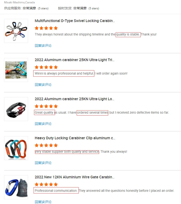 4.Our workers have more than 10 years experience | 4.All our carabiner pass the loading weight test | ||||||