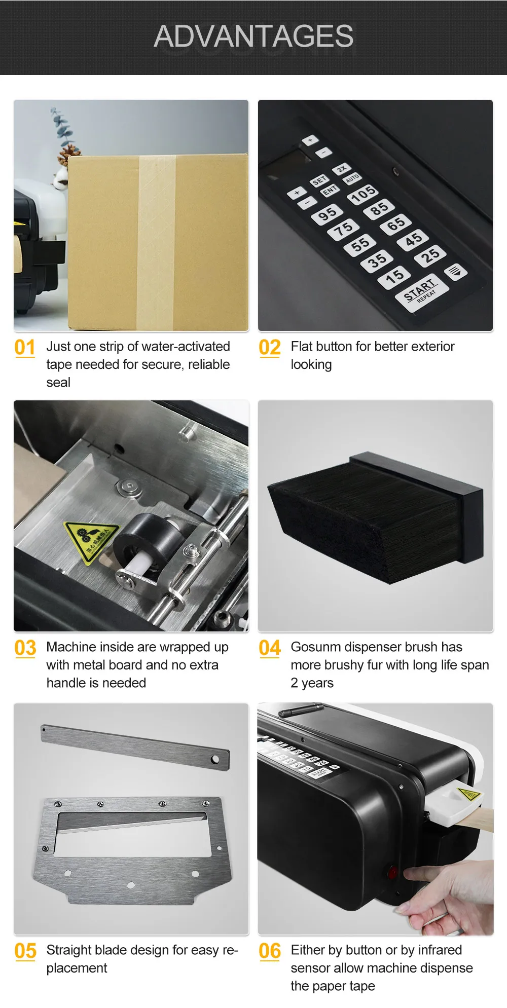•Tape output at fast speed •Offer one-touch dispensing of tape lengths •Brush position with heating function to enhance brushing effect