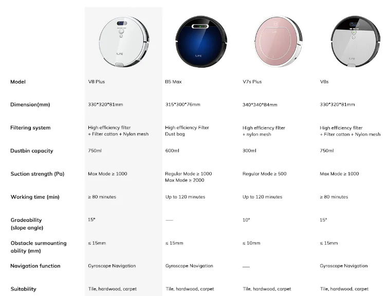 V8 Plus can also be used as a mopping robot with water tank and mop cloth, especially dealing with the stubborn stains and grime.it also equipped with 750ML Ultra Large Dustbin.