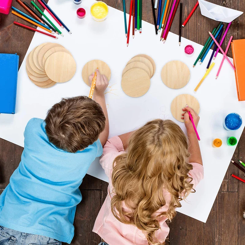 4 Inch Unfinished Round Wood Discs DIY Craft Coasters Wood Circles Round Slices Painting for Home Decoration | ||