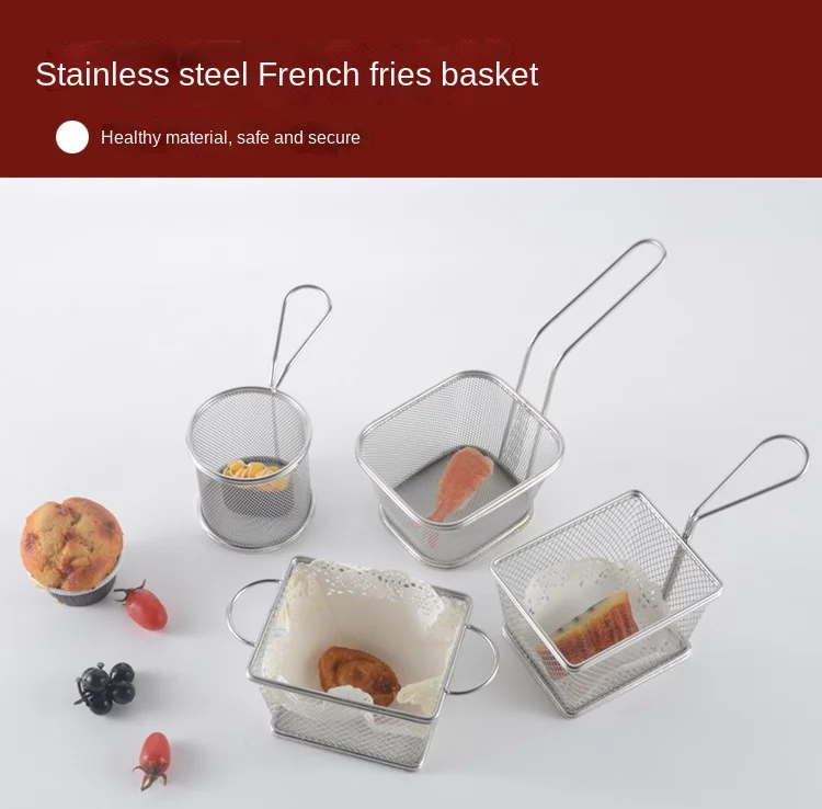 Hot Sale Kitchen Gadgets Summer 304 Stainless Steel French Fries Serving Basket Frying Basket