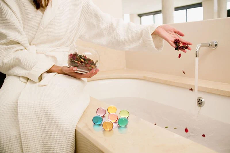 Put the appropriate amount of bath oil beads into bathtub, bath beads will melt and release the natural bath oil into hot water. No need to flushing the body after bathing.