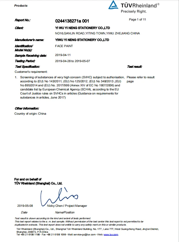 Certifications | BSCI, ISO9001, ICS, SDS, EN71-1-2-3, D4236 |