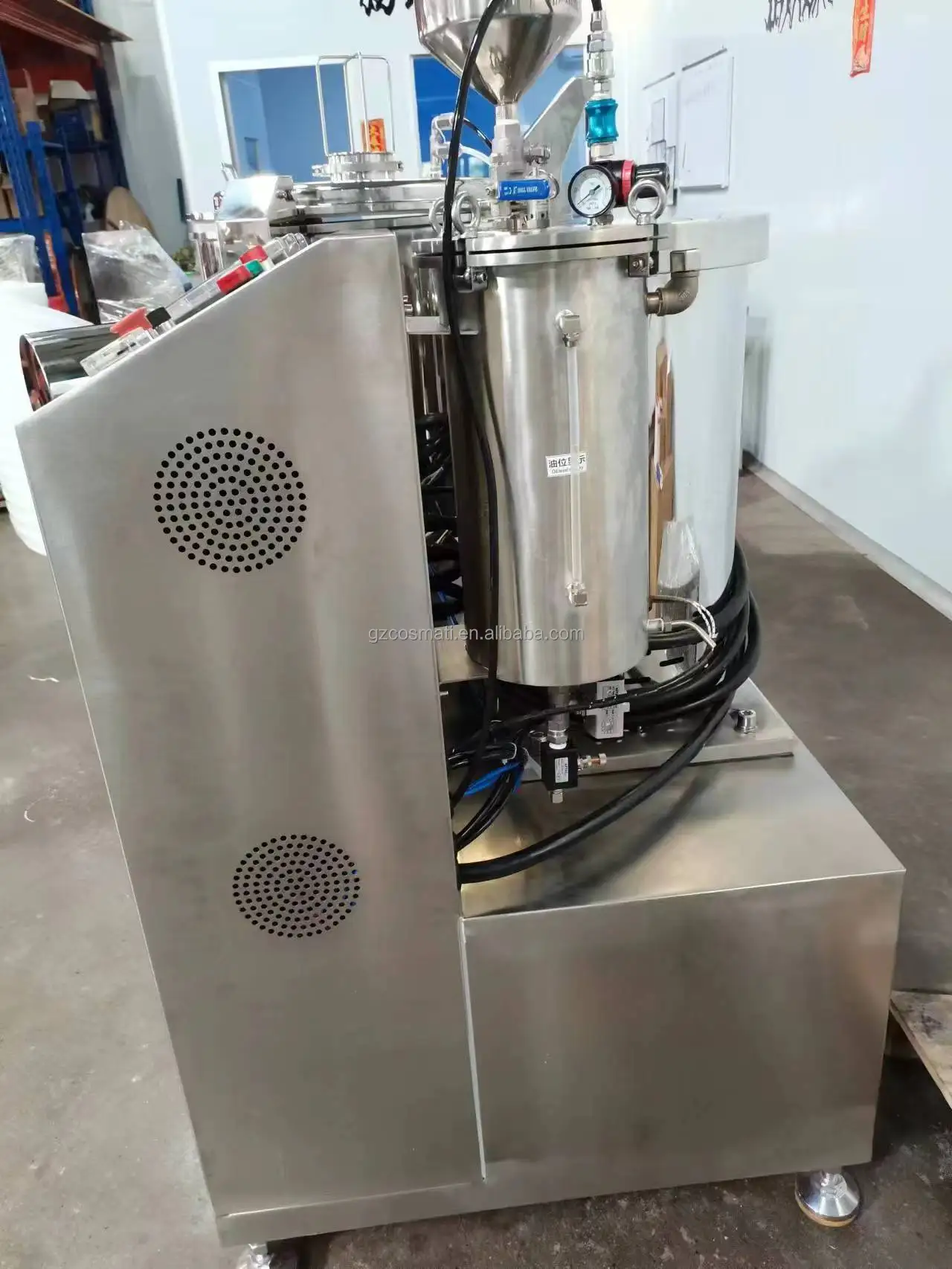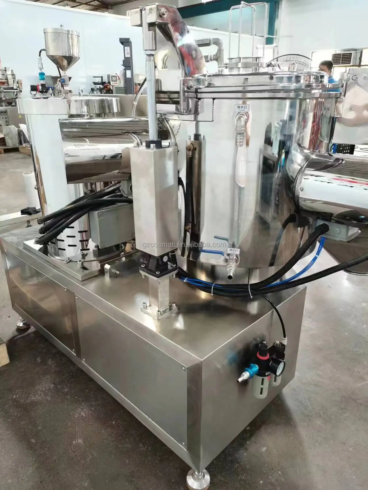 We have 2 factories, one was built in Jiangsu province, and mainly produce mixing tanks, vacuum emulsifier, and storage tanks, with 30 acres of space and with a pressure tank certificate. Another was built in Guangzhou city, mainly produce