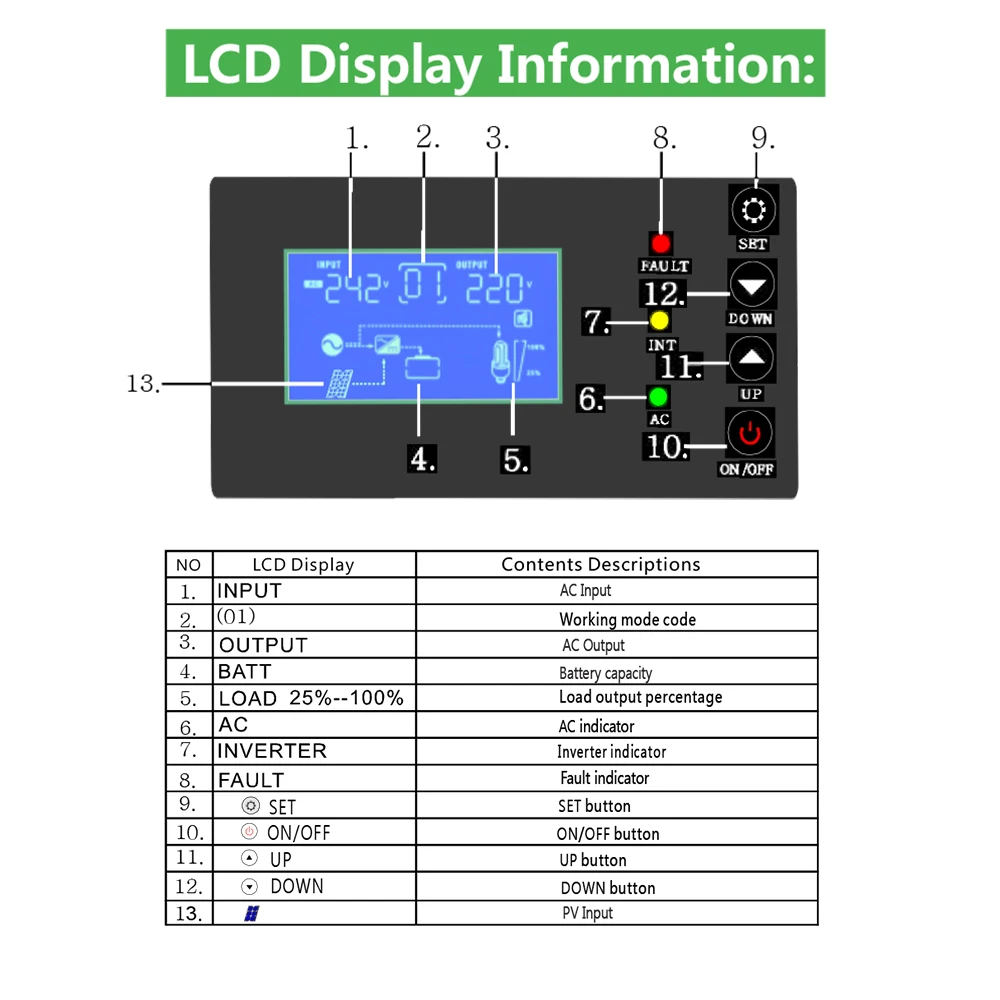 Frequency range | 50Hz:45-65Hz; 60Hz:55Hz-65Hz;50Hz/60Hz(auto setting) | |||||||||