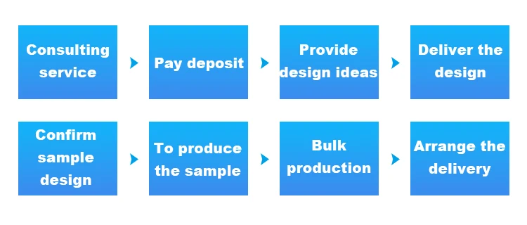 A:Generally we will arrange production after you confirm the deisgn,then once finished,will send the video&pictures for you
