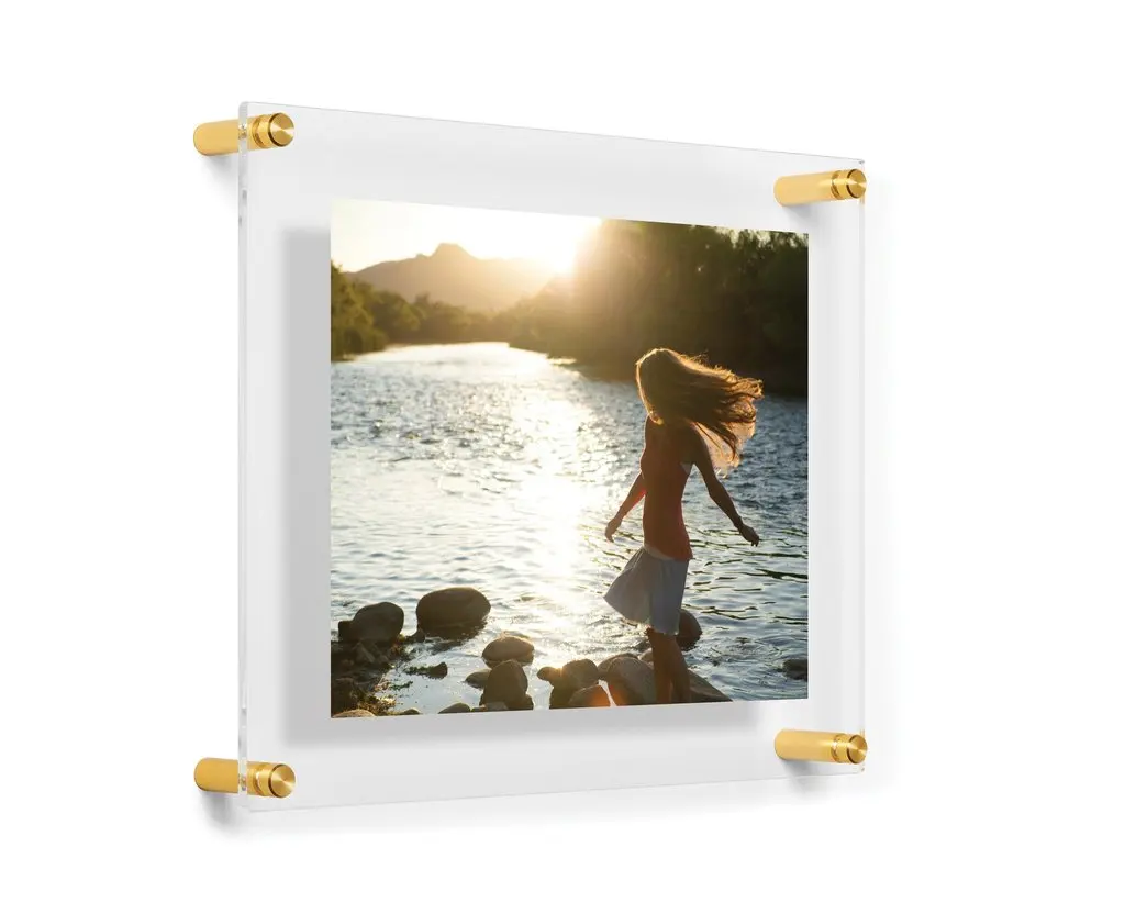 Wall mounted clear acrylic frames perfect for photos, posters or prints with silver finish mounts. Simply sandwich your image in between the two clear acrylic panels and secure with the silver finish wall mounts supplied, making it easy to change your image.