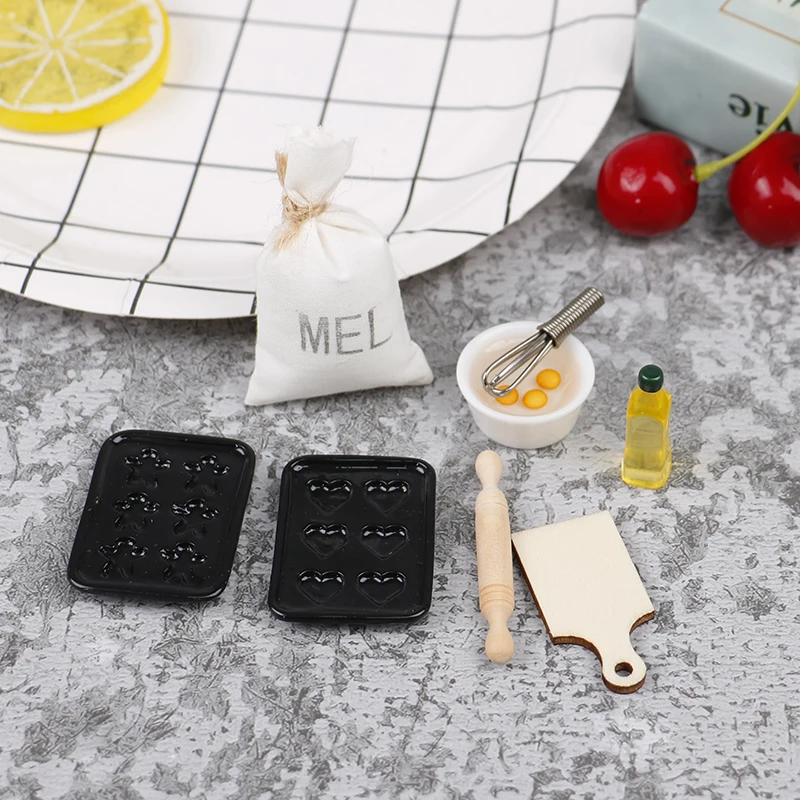 Size | Cloth bag:6*3.6cm; Olive oil:3*0.8cm: Mold:4*3cm; Rolling pin:5cm; Eggbeater:3cm; Egg bowl:2.7*1.2cm; Chopping board:4*2cm |