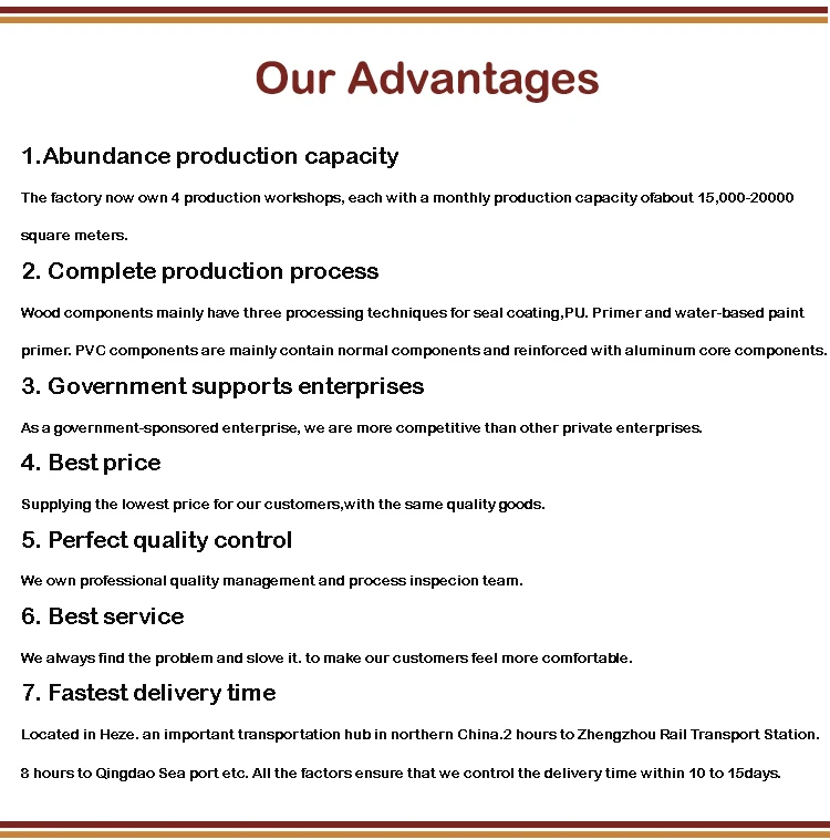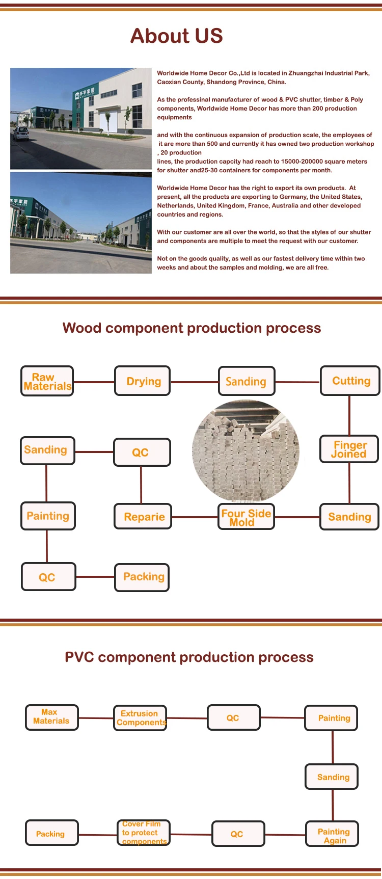 We mainly produces Paulownia, Basswood, PVC, Aluminum Plantation shutters, and Paulownia, Poplar, and PVC shutter components.