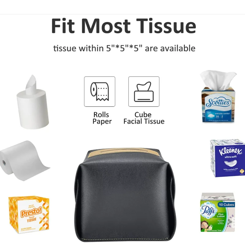 Product Name | Modern PU Leather Square Tissue Box Holder Cube Roll Tissue Decorative Holder Organizer for Bathroom | |