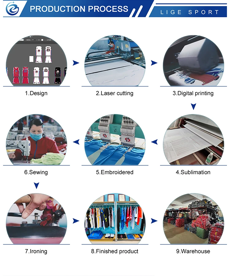 A: Inquiry--Confirm fabric, quantity, logo--Confirm sample--Deposit--Bulk production--Balance payment--Delivery--After sales