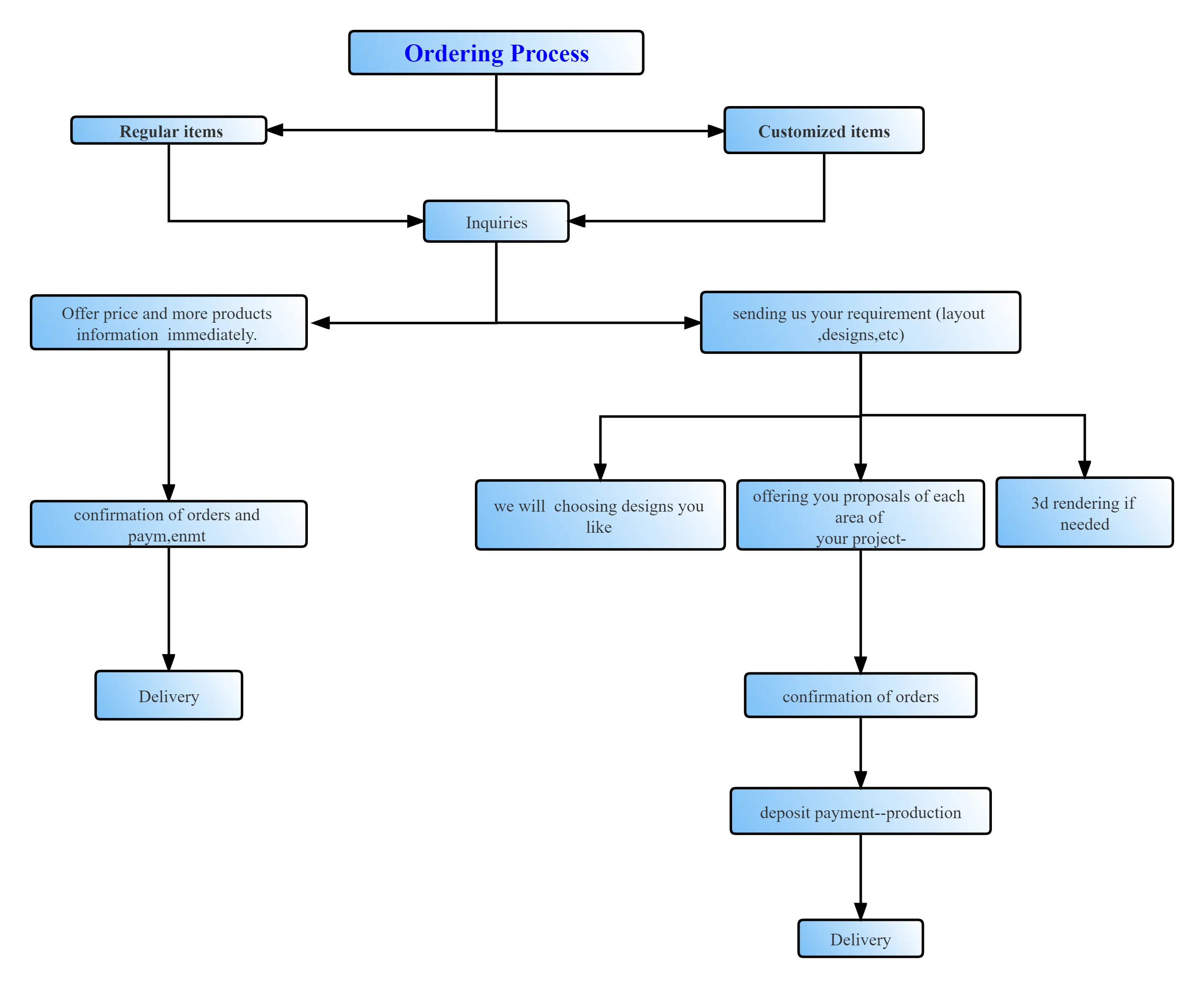 A5.It depends on the designs that you choose. Normally, our products can be ready for delivery from 7days -60days.