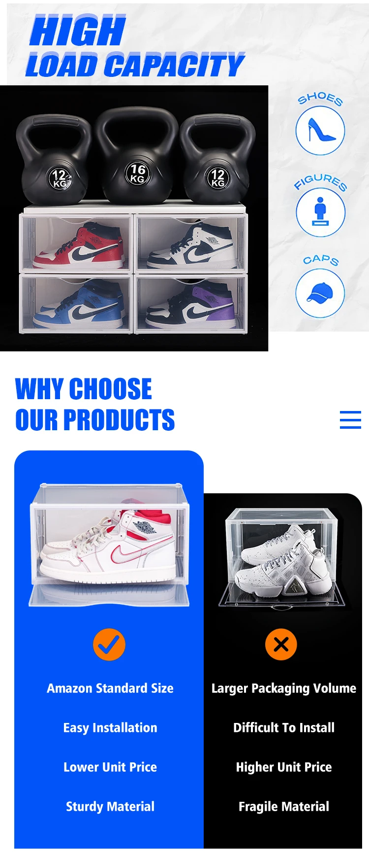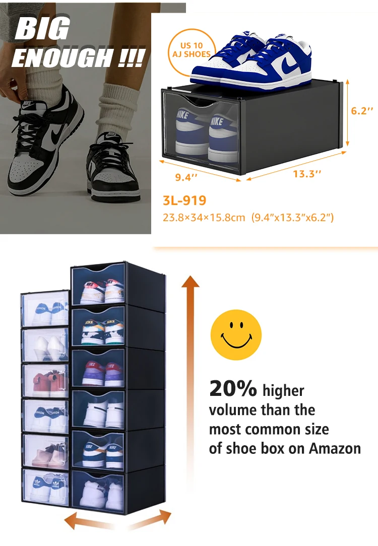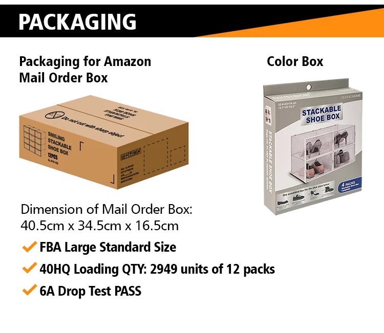 The CBM of each package of 6pcs is only 0.012 M3(0.42cu ft), saving 90% cost than normal shoe boxes.