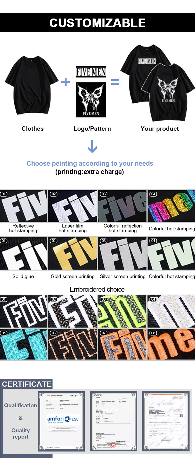 Heat Transfer, Silk-screen Printing, Silicone Gel, Embroidered