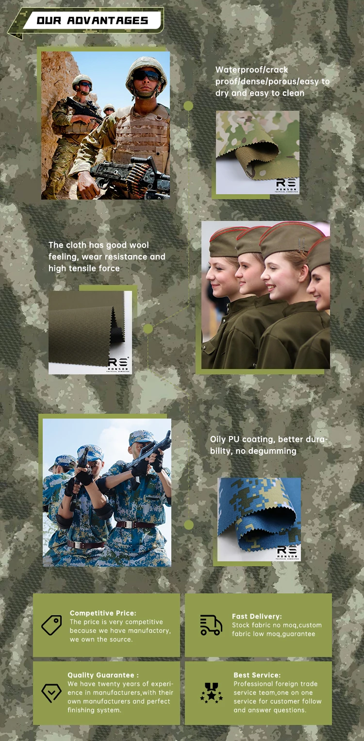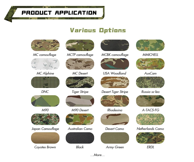 Use | Military, Bag, Costume, Garment, Sportswear, Tent, uniform, Upholstery, Car, Fashion Accessories-Shoes, Fashion Accessories-Luggage, Fashion Accessories-Bags&Purses&Totes, Fashion Accessories-Gloves&Mittens, Apparel-Coat/Jacket, Apparel-Pants&Shorts, Apparel-Jeans, Apparel-Uniform, Home Textile-Sofa cover, Outdoor-Tent, Outdoor-Awning |