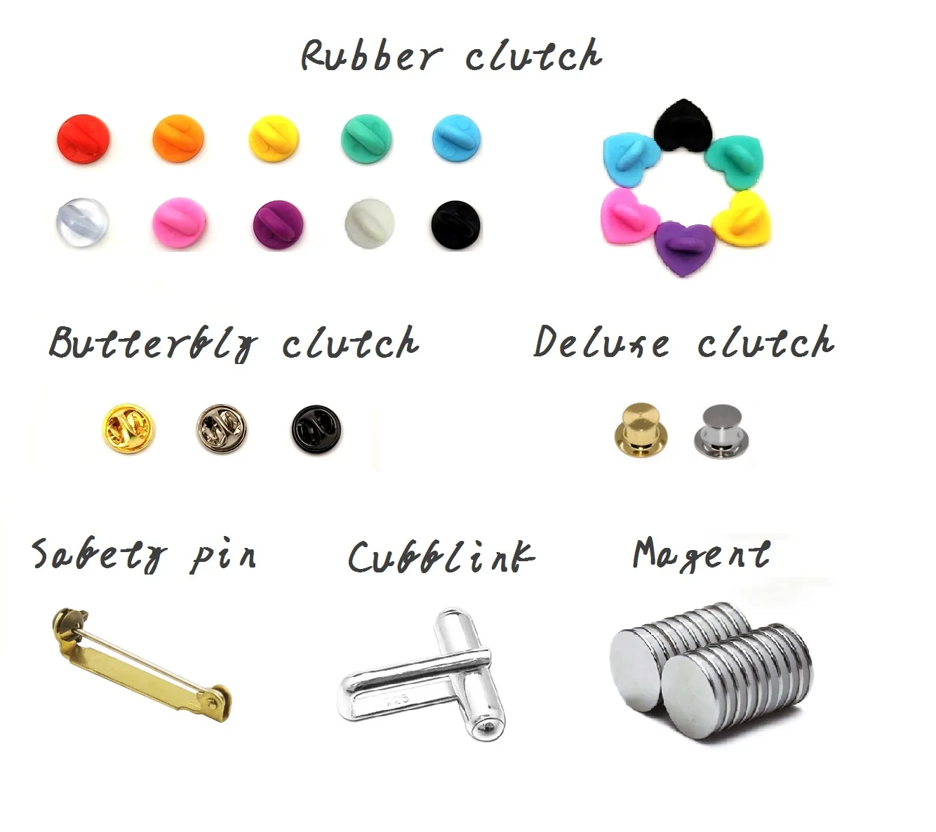 Attachment | Rubber/Butterfly/Safety Pin/Jewelry/Deluxe/Cuff link/Magnet etc. | ||||||