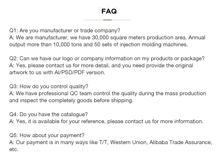 ZHEJIANG PUYUE TECHNOLOGY CO.,LTD,the parent company is TAIZHOU MEIXIANG, which was established in 2006. The company currently has two major production bases in Taizhou and Hubei, with a production area of about 30,000 square meters and an annual output of 10,000 tons. The factory has nearly 50 injection molding machines, uses new materials, automatic manipulators and pipeline production modes.