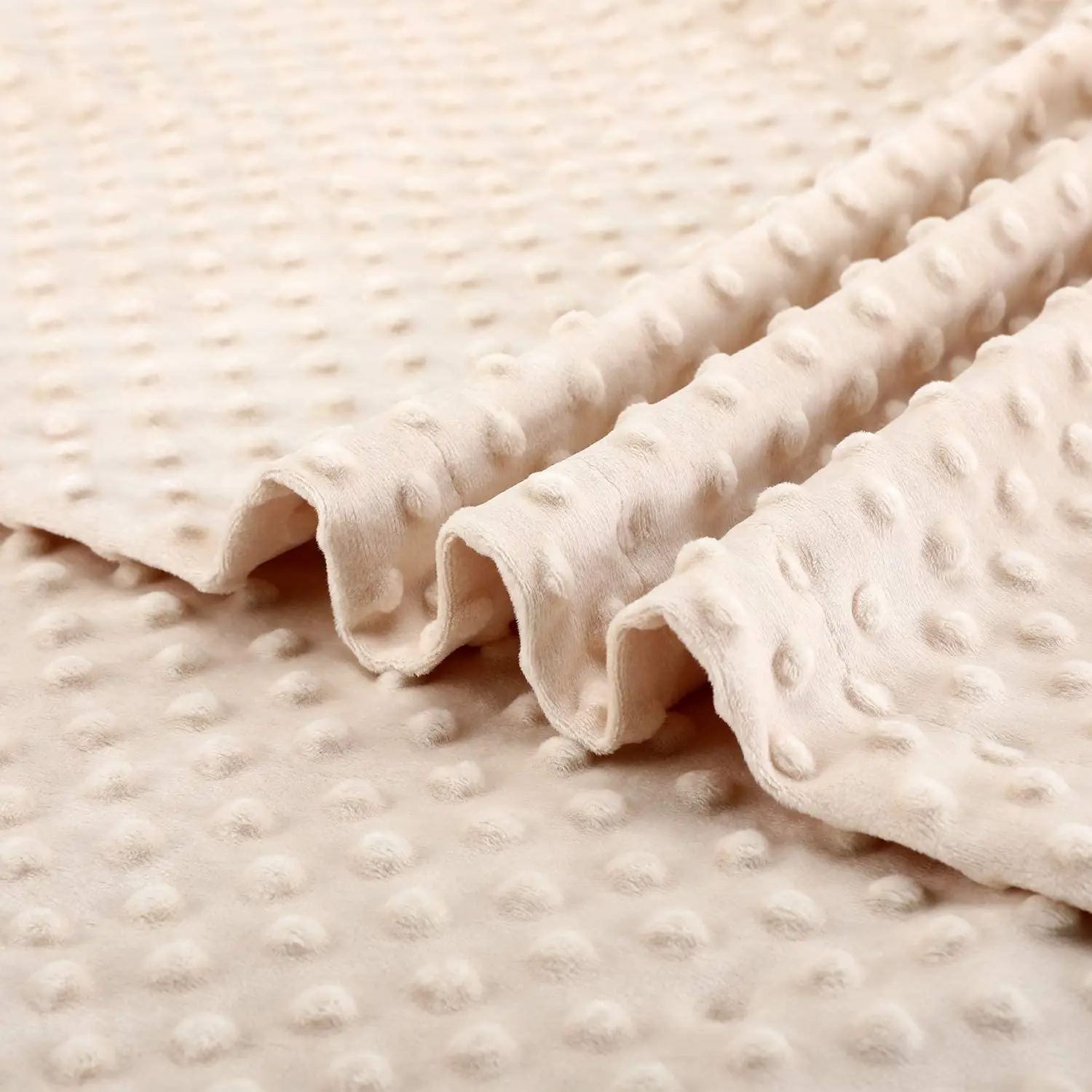 2. The soft and gentle blanket is handcrafted with love, made of eco-friendly and safe materials, stitched through two layers, and thick enough for all seasons. The ultra-comfortable, double-layered 3D polka dot design provides warm and secure comfort while remaining breathable without harming your baby's skin.