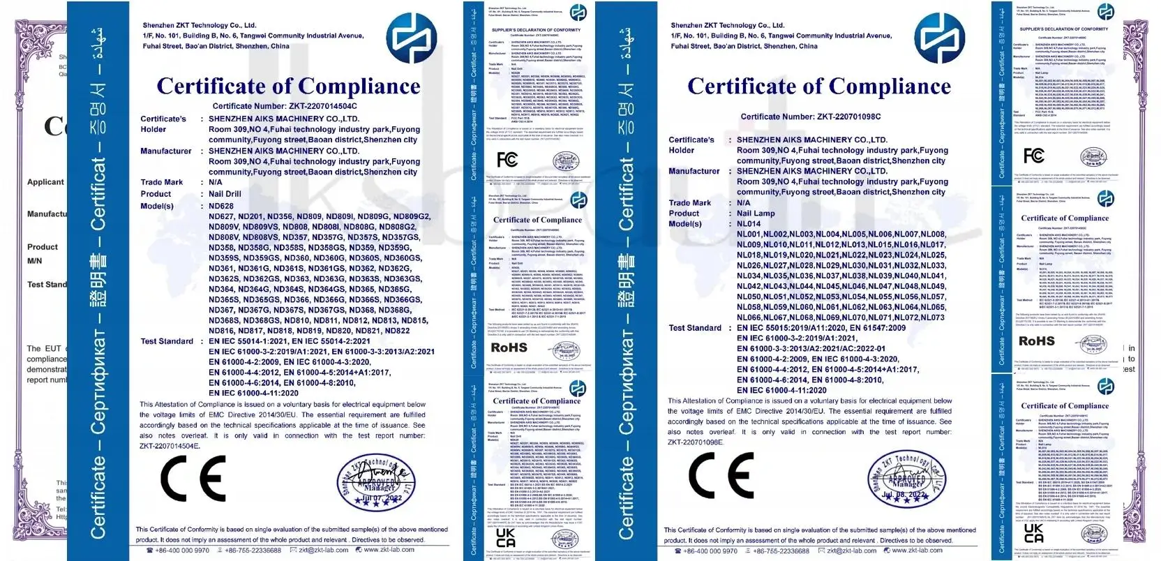 AIKSBEAUTY: We have CE, RoHs certificates for products,CE approved.