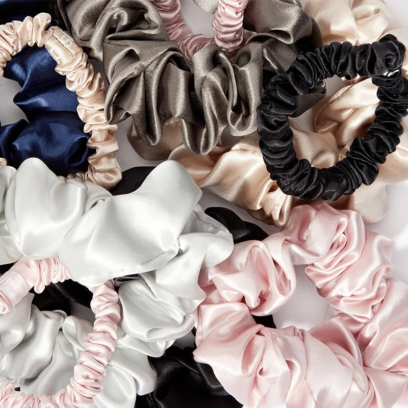Luxury Designer 100% mulberry silk 2022 scrunchies custom Hair bands soft silk packet of scrunchies
