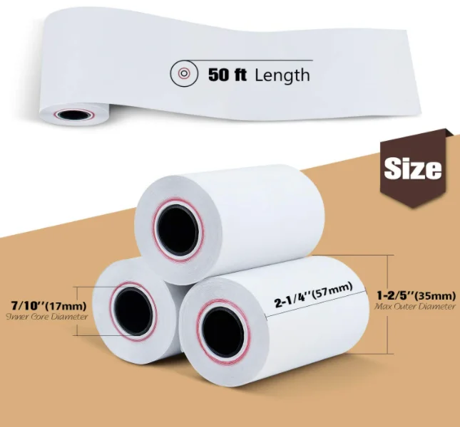 2 1/4 x 50 Thermal Paper Receipt Rolls 2.25 x 50 ft, POS/Cash Register, Fits All Credit Card Terminals, Verifone VX520 Ingenico ICT220 ICT250 FD400, BPA Free, 50 Rolls