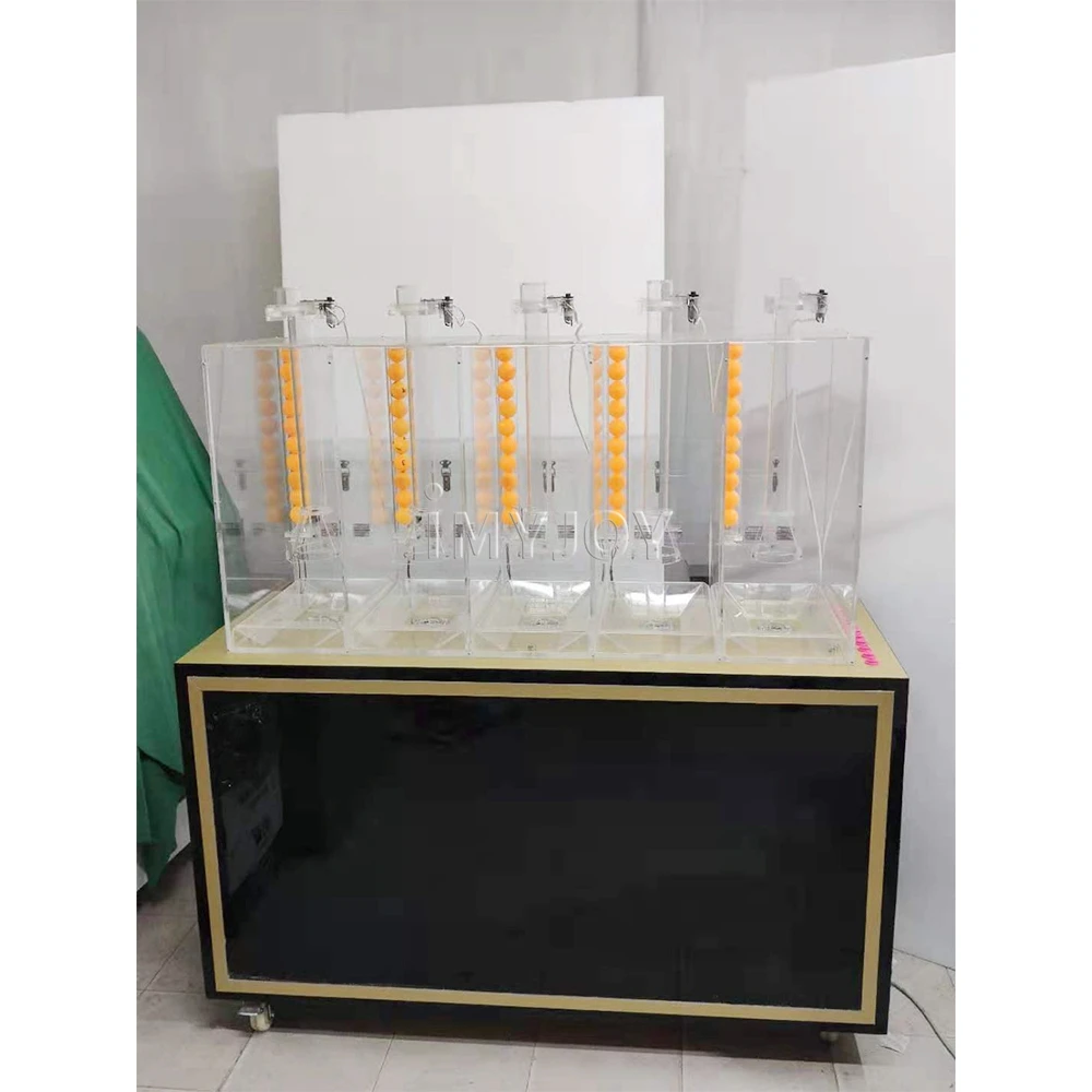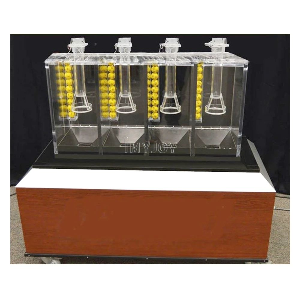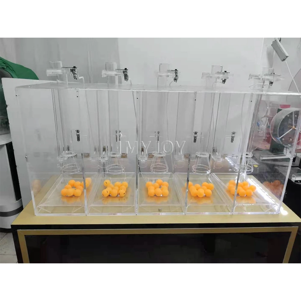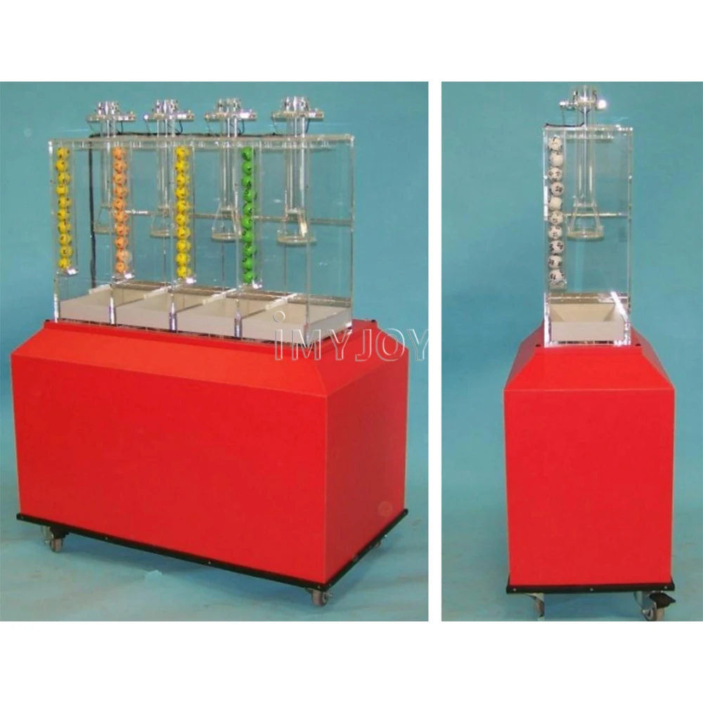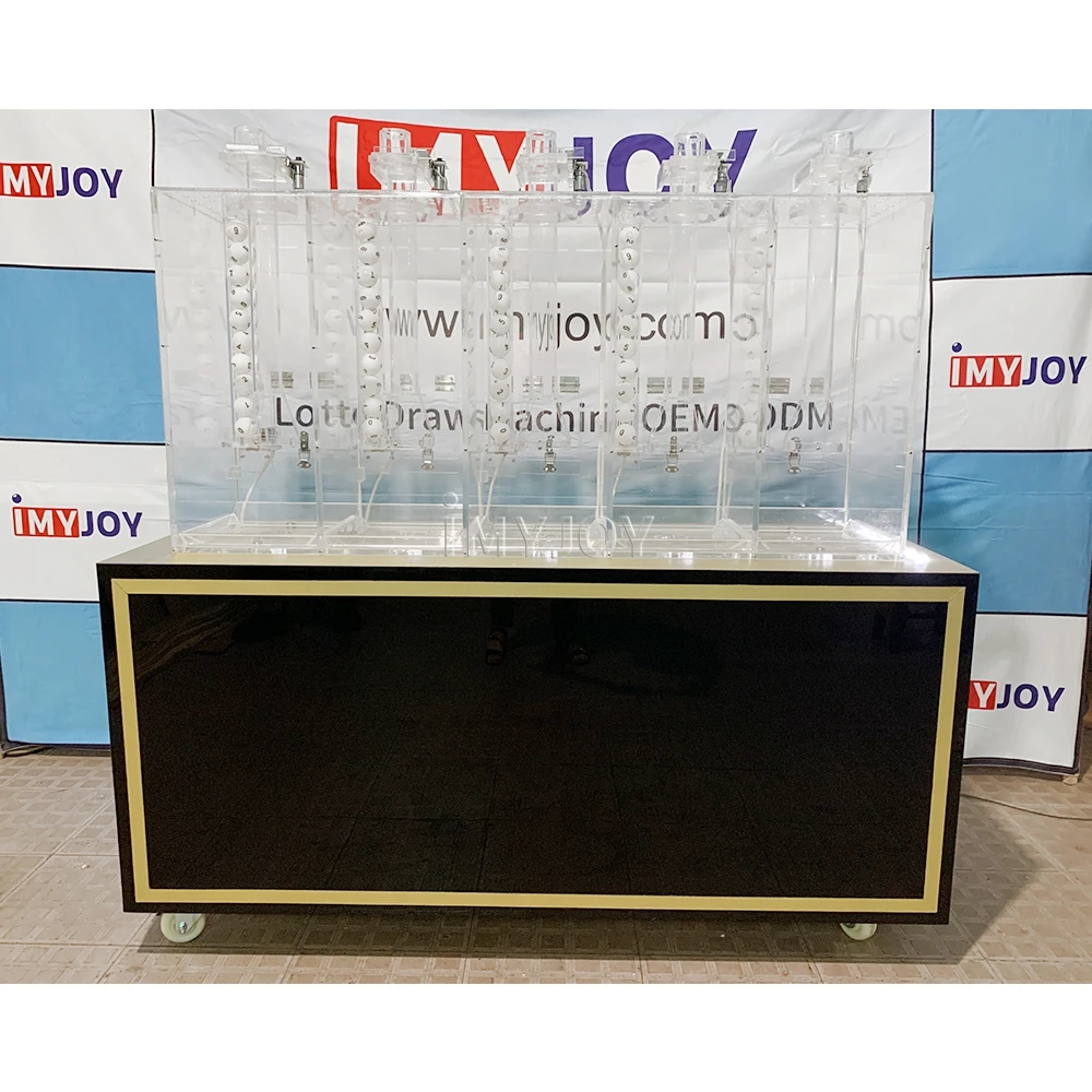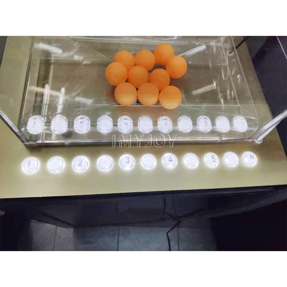 Imyjoy lotto machine have 1/2/3/4/7 or 1/2/3/4/5 number button (Press which number that mean how many balls draw out), we also can customize based on your requirement;