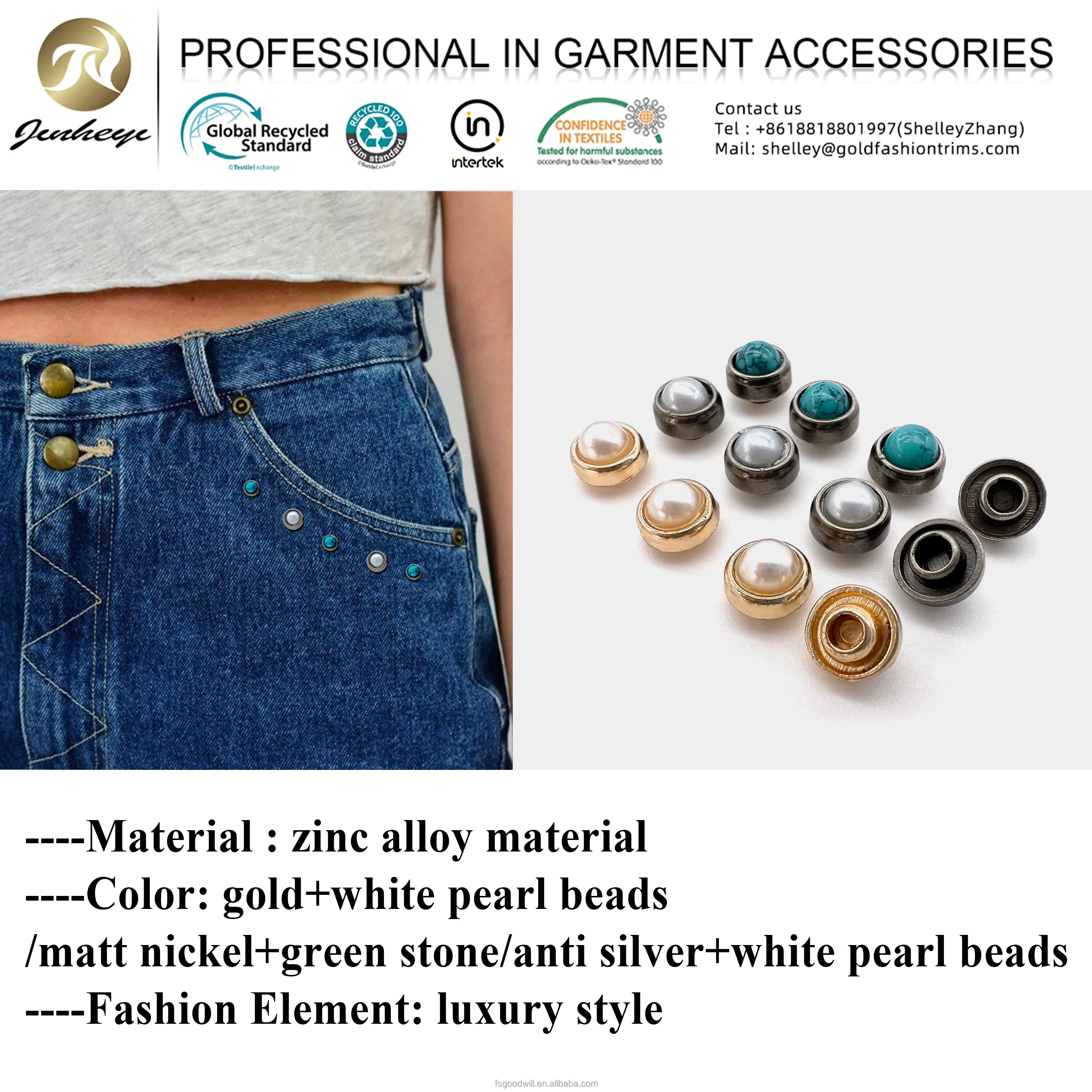 Color | Matte nickel+green stone /Anti silver +white pearl / Gold +white pearl |