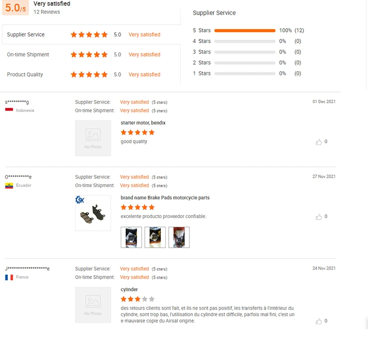 A: We specialize in the  production and sale of motorcycle cylinder,cylinder group, carburetor, crankshaft, igniter, magneto, highpressure pack, starter motor, lamp, lock, rearview mirror, helmet,brake shoe, brake disc, reed valve, manostat, fuel tank switch andother motorcycle accessories