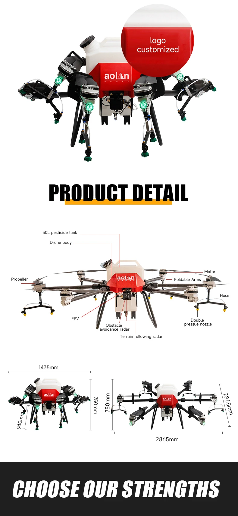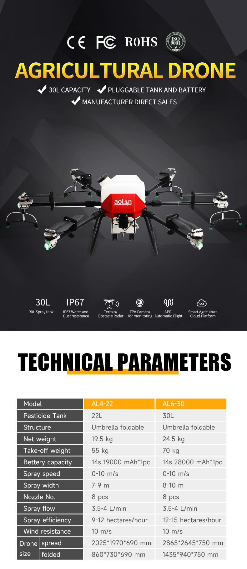 Drone size | spread | 2025*1970*690 mm | 2865*2645*750 mm | |||||