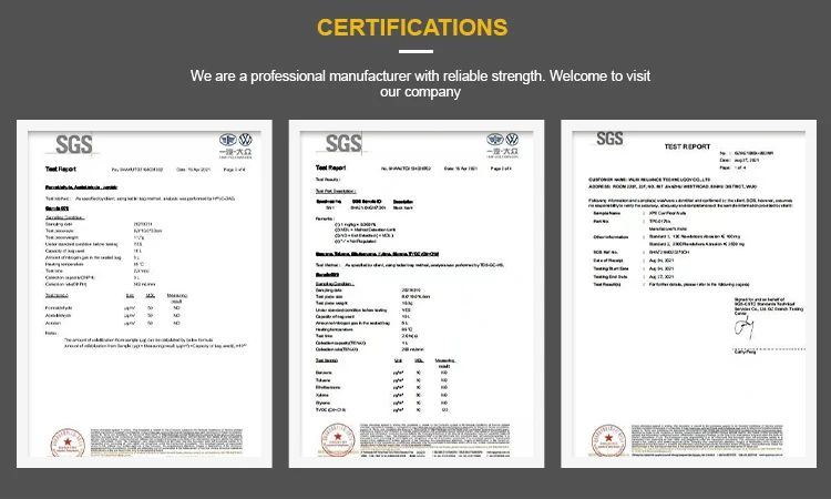 Our raw material, semi-finished products and finished products are all via certification by SGS.