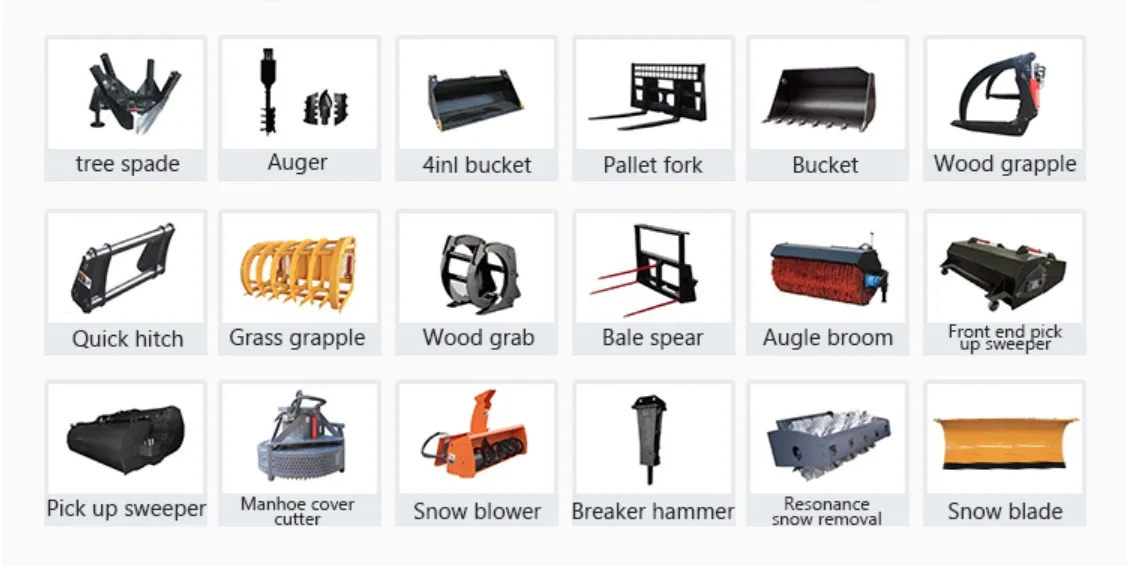 1. Euro II/III, EPA, Tier 2/3/4 engine 2. 3/4 ways valves 3. EU farm shape/construction shape 4. LED lights, rear/front/top/brake light, cabin interior light 5. Heater, fans, radio, MP3, fire extinguisher in cabin 6. Reverse alarm, luxurious cab,adjustable seat, best tire 7. Optional items: floating function, rear camera, hydraulic joystick, electronic joystick, outer preheater for engine, hand brake, netural start, AC 8. Optional attachments: quick hitch, pallet fork, log fork, snow blade, snow plow, snow sweeper, 4 in 1 bucket, grass cutter, digger, drilling, hydraulic hammer etc.