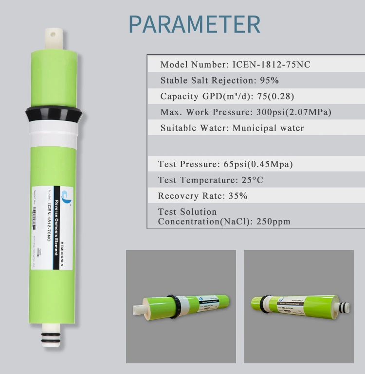 Мембранные элементы обратного осмоса Qicen 1812 75 GPD для очистки воды с высоким уровнем