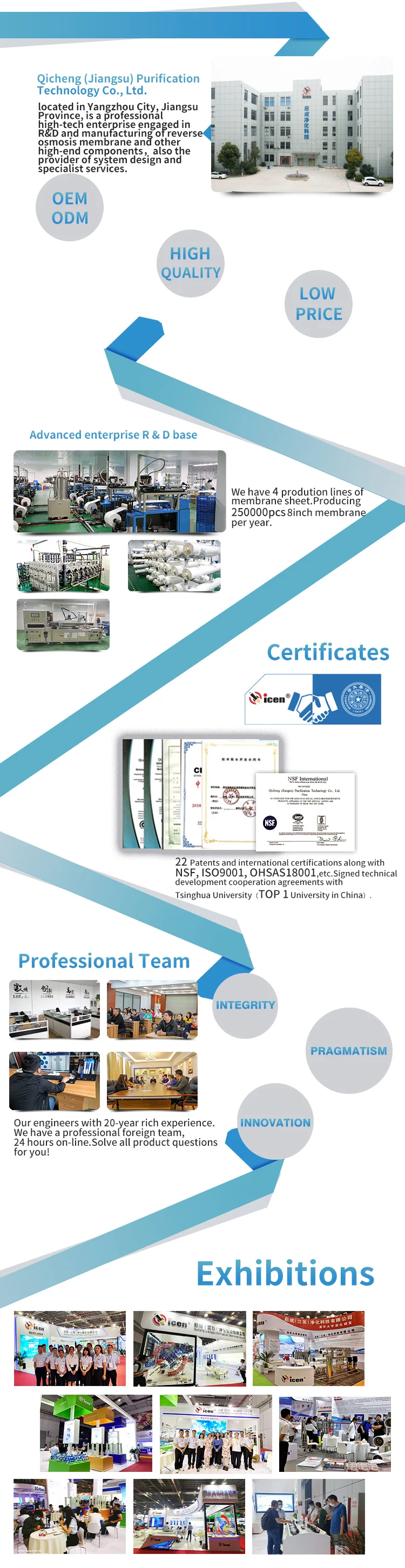 We can provide OEM&ODM services including salt rejection, permeated flow, package, etc.