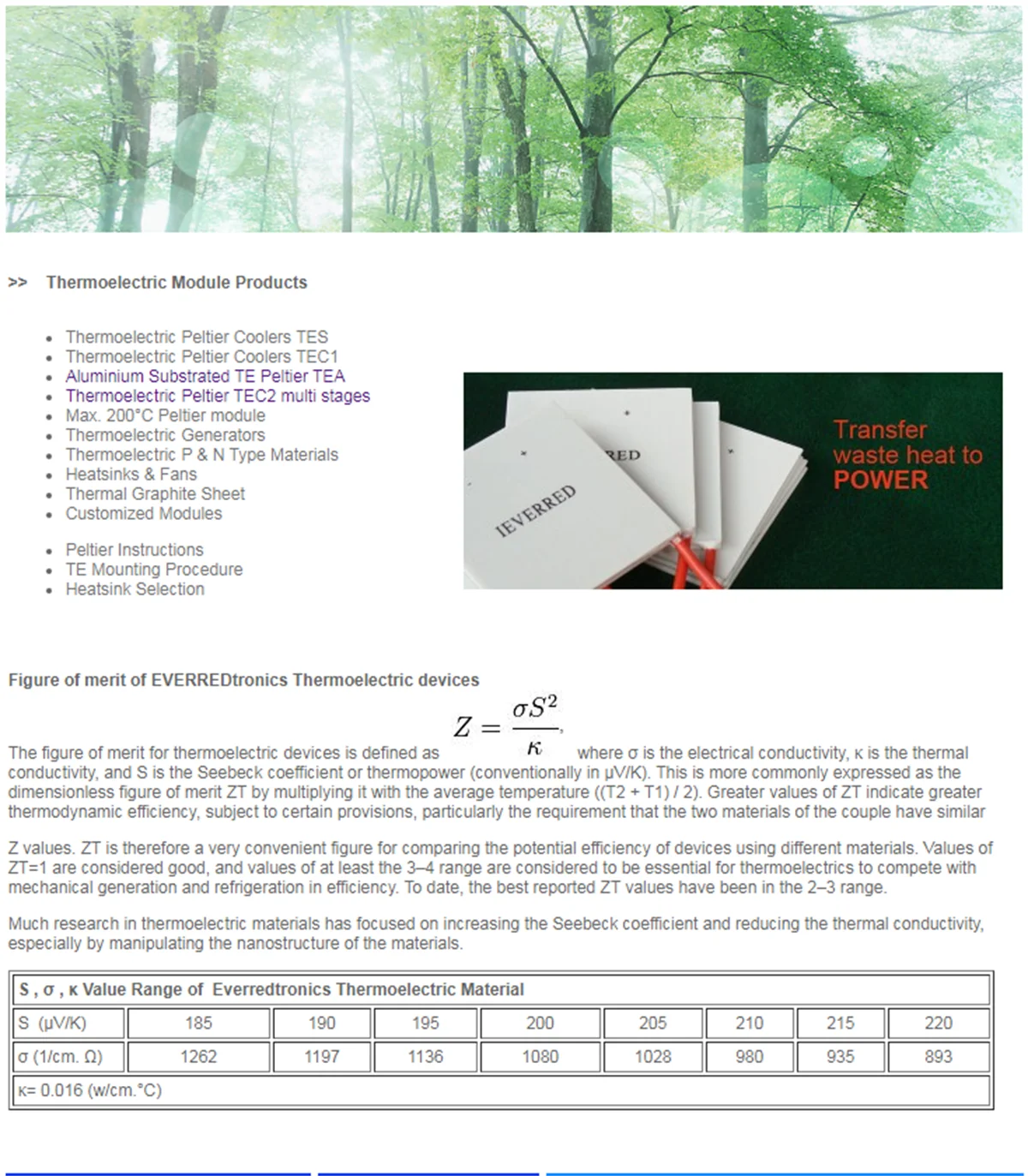 and our thermoelectric module (peltier coolers) FEATURES: