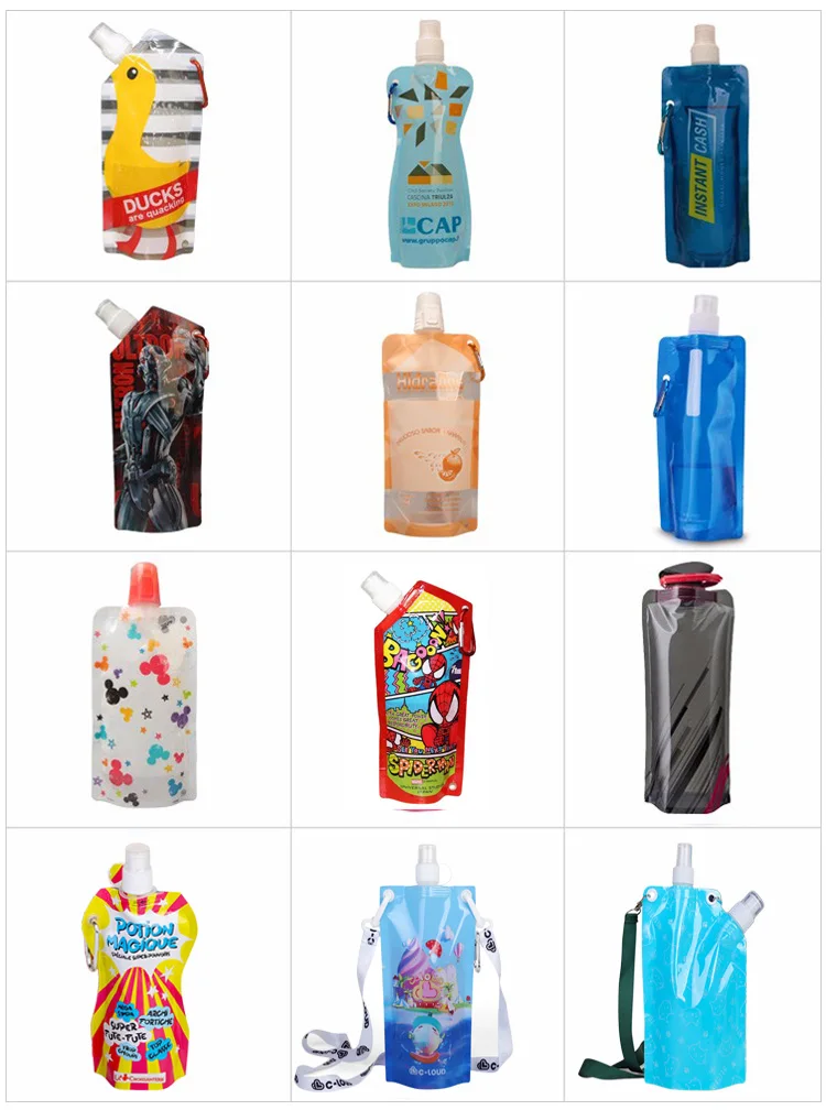 Manufacturer On Stock Custom Printed 480 500 ml Portable Reusable Sport Drink Packaging Folding Plastic Water Pouch Bag