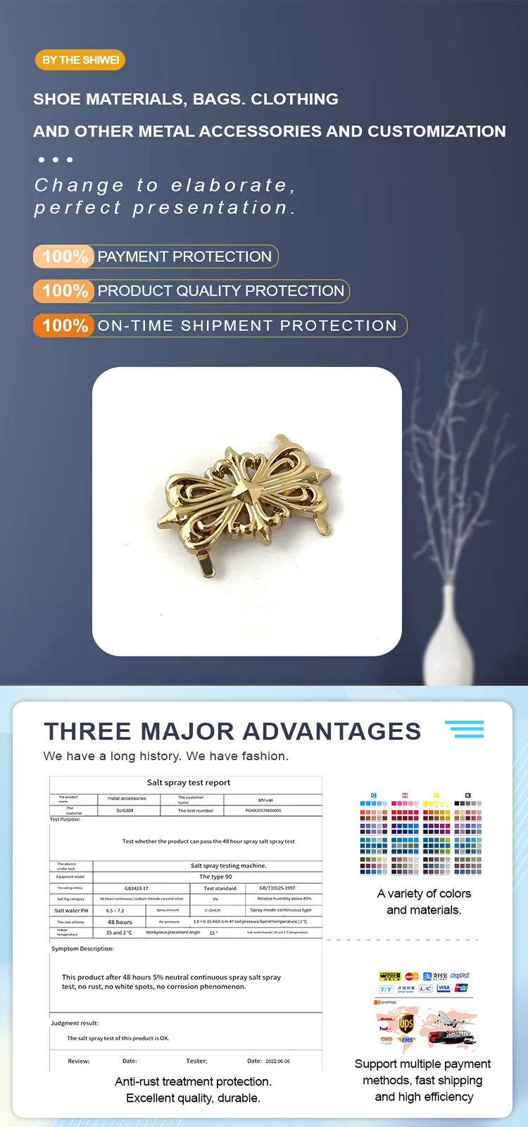 Our company is specialized in designing, developing, producing and selling all kinds of shoe buttons, shoe flowers, luggage buttons, clothing buttons, trademarks, zippers and other hardware products. Since its growth, it has a strong production chain, excellent quality, and hundreds of thousands of products, satisfying the high, middle and low-end markets.