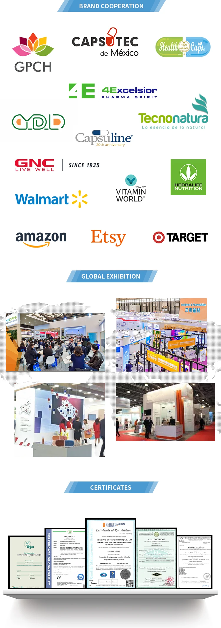 A: We are a professional manufacturer specializing in gelatin powder,Gelatin Capsule, Vegetarian Capsule,HPMC Capsule,Capsule Filler,etc for more than 20 Years. Our Factory in located in Xinchang Ru'ao Capsule Industrial Area,Shaoxing,Zhejiang. | ||||||||