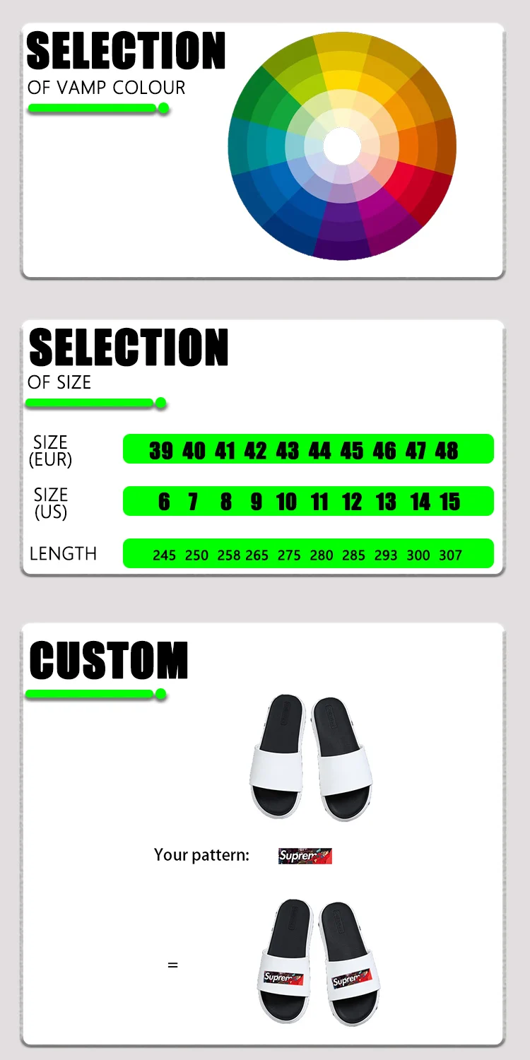Outsole Material | PVC, GENUINE LEATHER, PU, Rubber, EVA, Cork, Plastic, Wood, vibram, TPR, TPU, Bonded Leather, Straw, Oxford |